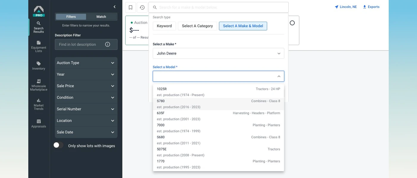 We’ve improved Search Results in Tractor Zoom Pro with a streamlined search bar and two new capabilities: Saved and Recent searches. These changes will help you quickly and easily find the equipment comps and sale results you need.