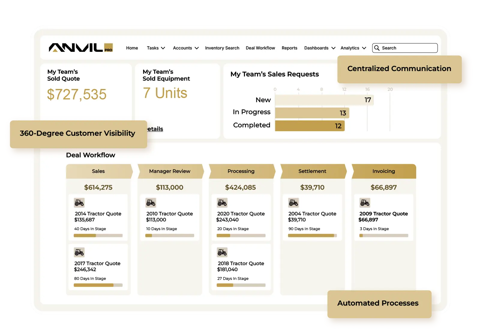 Whether you're focused on pricing used iron, managing a complex sales pipeline, or trying to get your whole team working from the same playbook, our solutions are built specifically for the way equipment dealers operate – for the actual users across departments.
