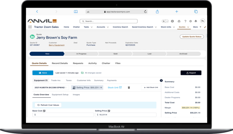 By centralizing creation of quotes within Anvil Pro, dealers save time, reduce errors, and deliver a more consistent and professional experience to buyers.